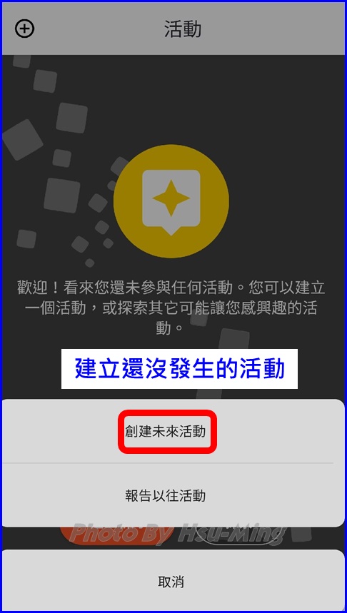 若您還沒建立或參加任何活動則會顯示這個畫面