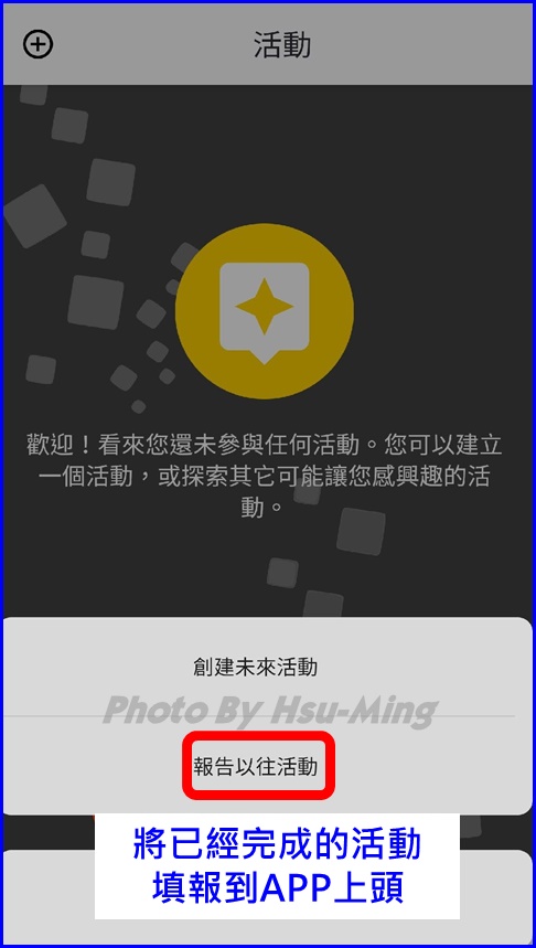 點擊+號 您也可以報告已往活動(已經舉辦完成的活動)