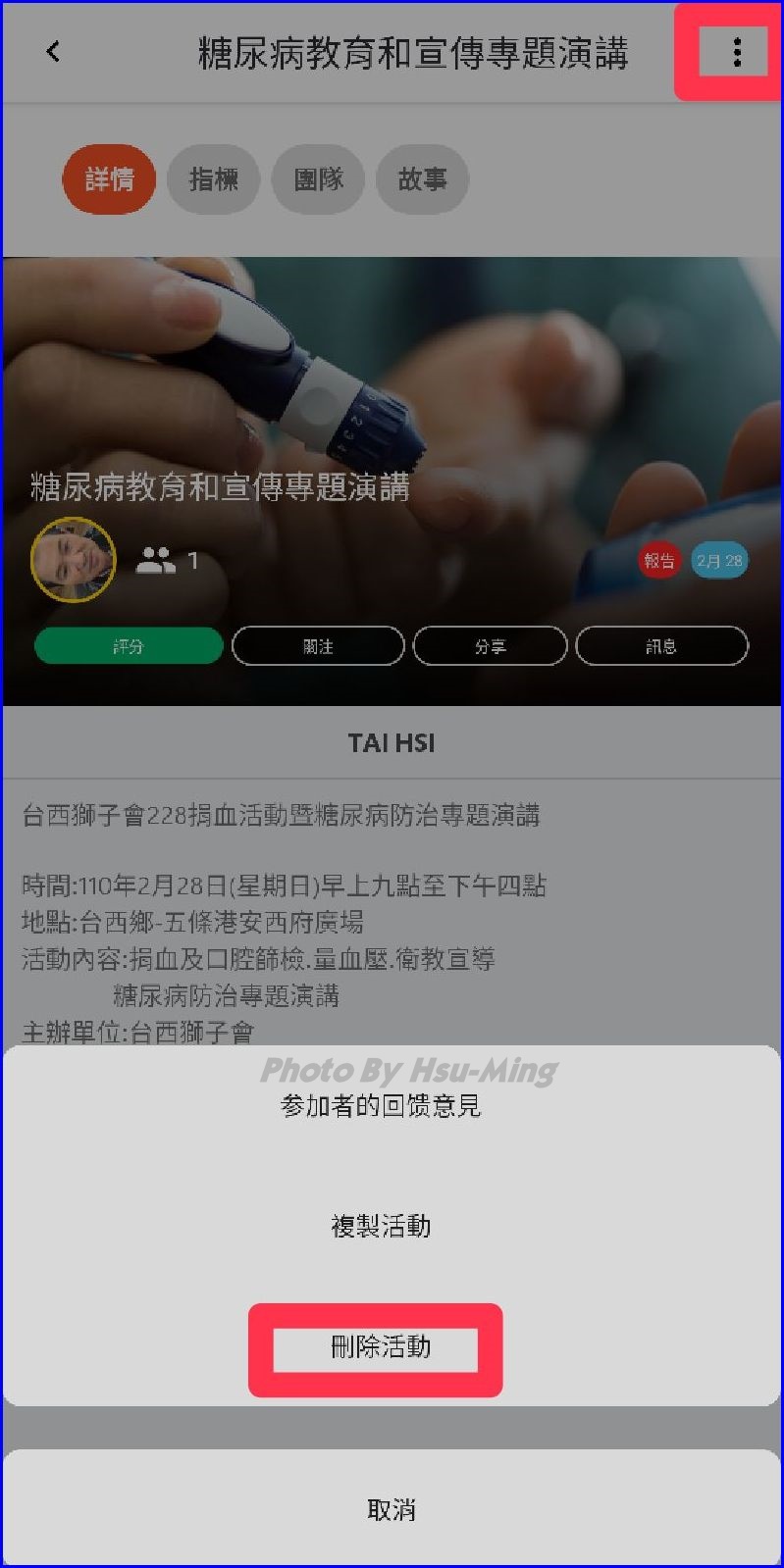※若是這項服務報告已另有完成報告,請進入活動並刪除此項活動