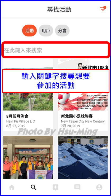 或者您直接"輸入關鍵字"來搜尋想要參加的活動,例:300D1