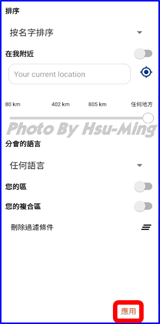 請直接輸入分會英文名稱來搜尋並送出搜尋