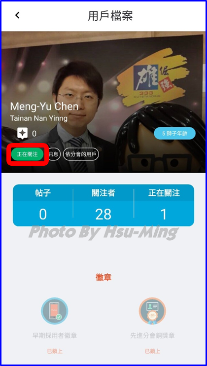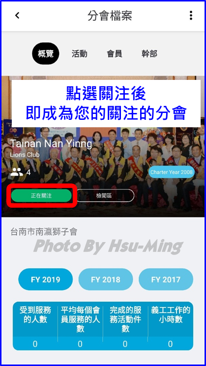 進入分會檔案後請點擊"關注",即成為您關注的分會