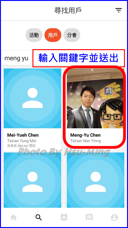 當找到您搜尋的獅友後,請直接按下他的頭像後